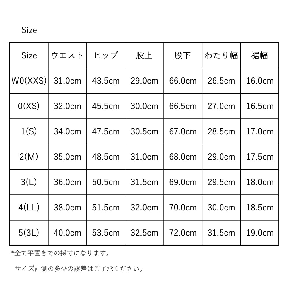 サイズは、W0(XXS)~5(3L)の7サイズ。
