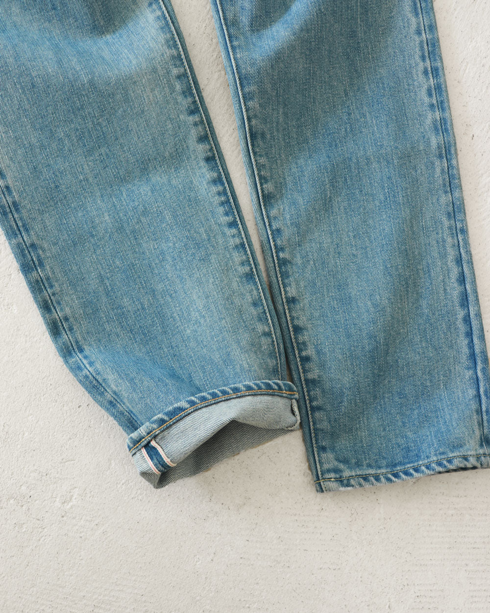 ブランドオリジナルの15.6oz セルビッチデニムを使用した5Pデニムパンツです。ゆっくりと時間をかけて洗い加工を施した、デニム本来のあたりなどを楽しんでいただけるIce Blueカラー。