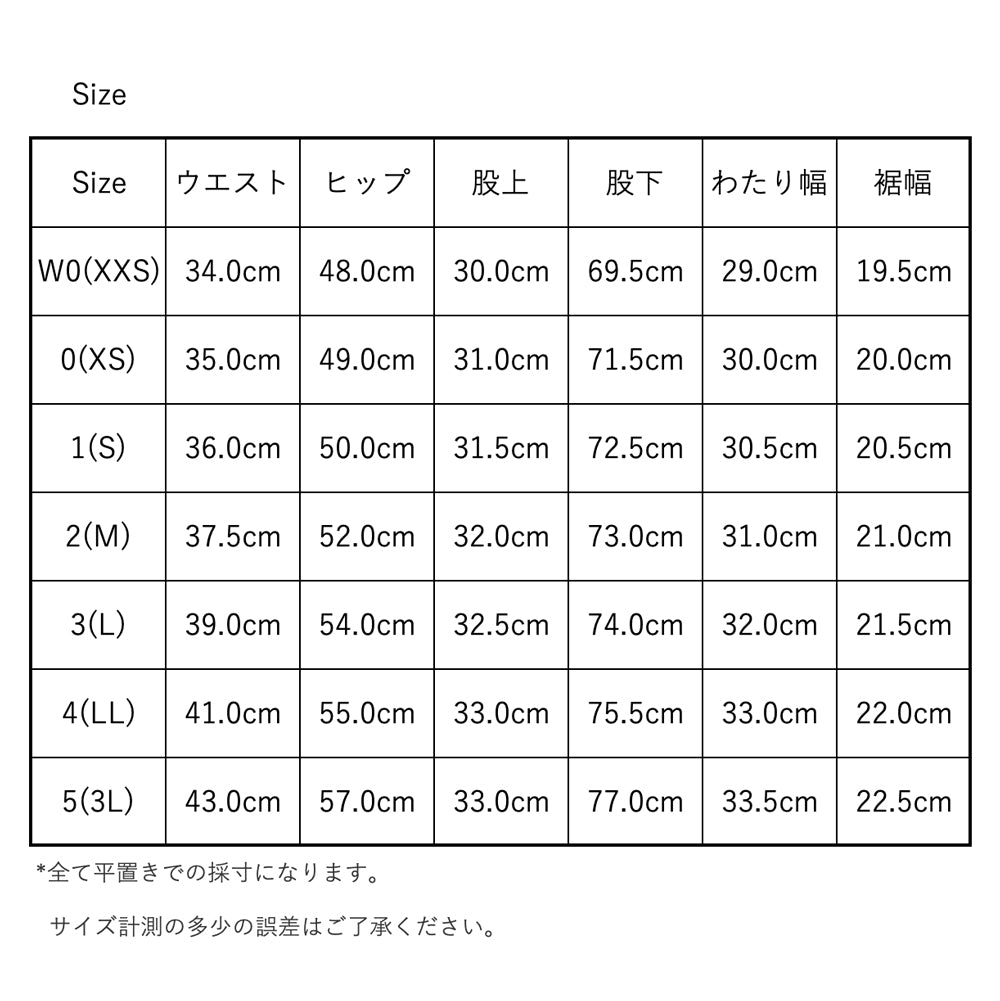 サイズは、W0(XXS)~5(3L)の7サイズ。