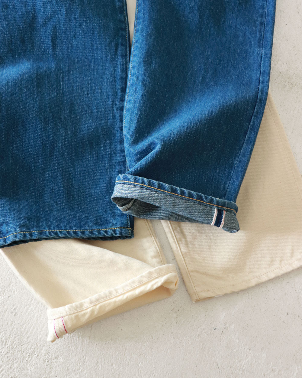 和紙をミックスしたコットン素材のオリジナルセルビッチデニムを使用した5Pデニムです。