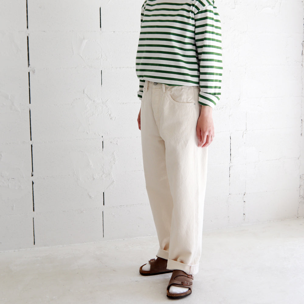 股上を深めの設定にし、ワタリはゆとりのあるストレートシルエット。