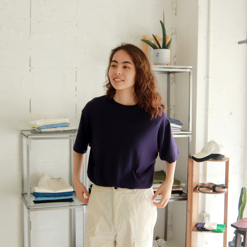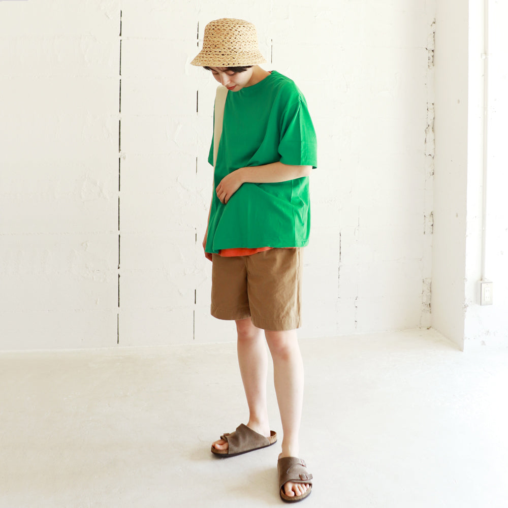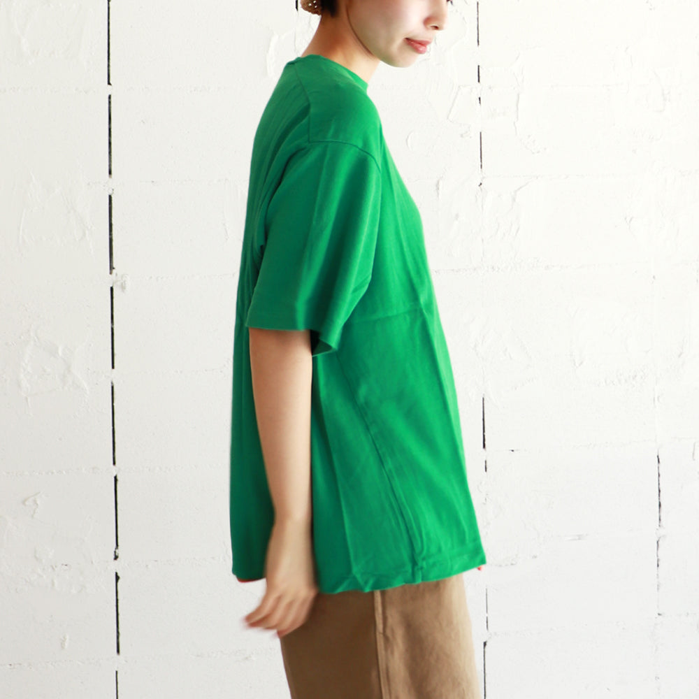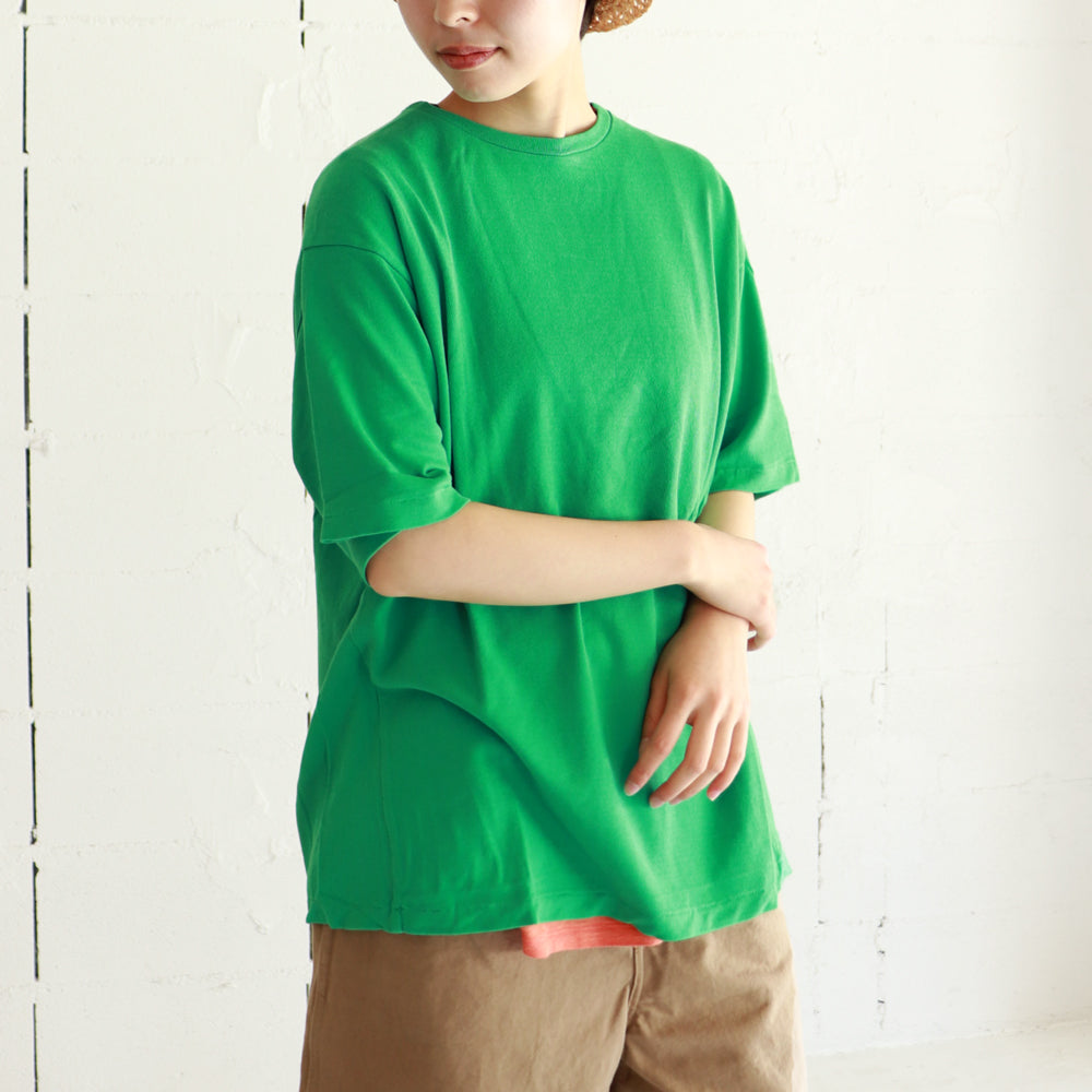 安心感のある程良い肉厚の生地感ながら、ドライなタッチ感なのでさらっとした着心地が特徴。