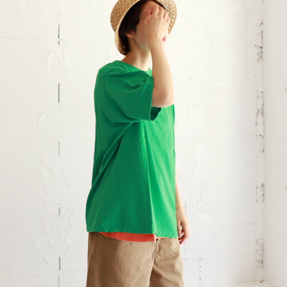 程よい首元の開きのクルーネック仕様。袖丈も肘にかかるくらいの安心感のある長さに。