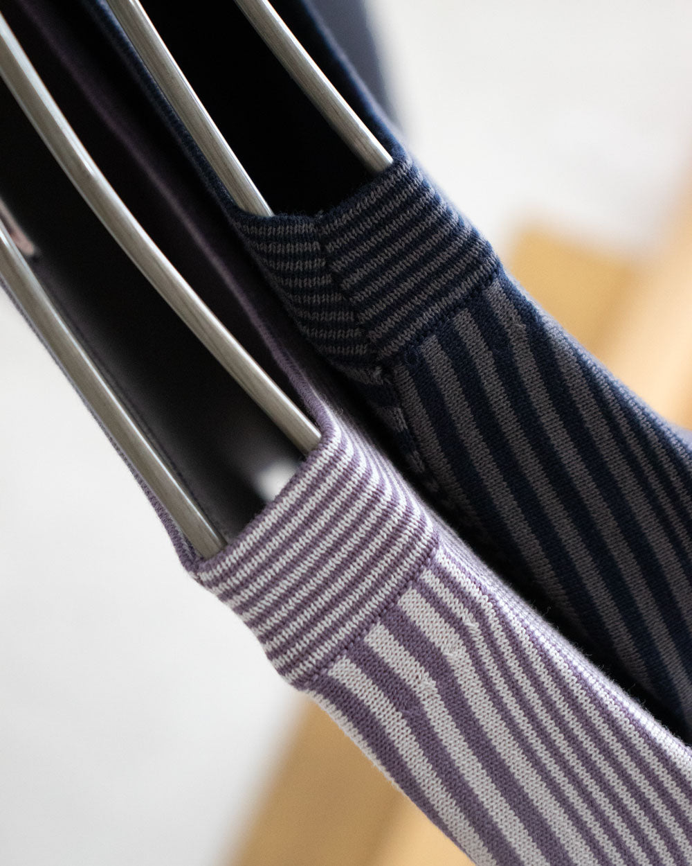通常カットソーと言われる製法で作られる「Tee シャツ」を、ライテンダーではニッティングの技法で製作しています。時間をかけ、ハイゲージ(編み目が細かい)で仕立て上げられるニットTはミシンが通らない為、縫い目のゴワツキや引っ掛かりが無く、とても上品な見た目となります。